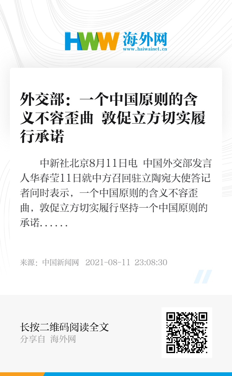 中新社北京8月11日电 中国外交部发言人华春莹11日就中方召回驻立陶宛大使答记者问时表示,一个中国原则的含义不容歪曲,敦促立方切实履行坚持一个中国原则的承诺。