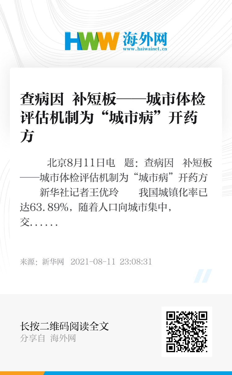 新华社北京8月11日电 题:查病因 补短板——城市体检评估机制为“城市病”开药方