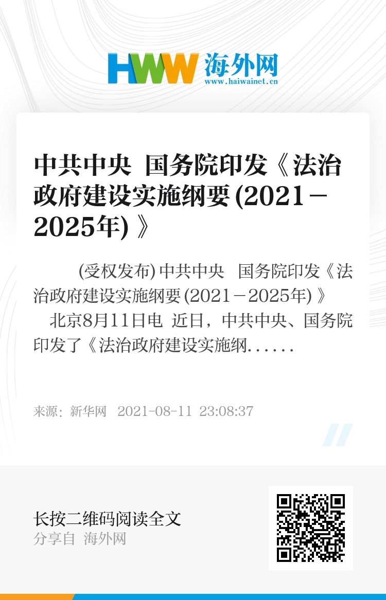 《法治政府建设实施纲要(2021-2025年)》全文如下。