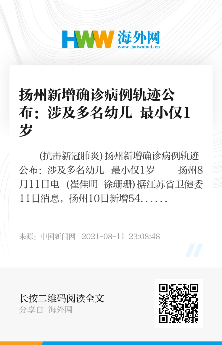 (抗击新冠肺炎)扬州新增确诊病例轨迹公布:涉及多名幼儿 最小仅1岁