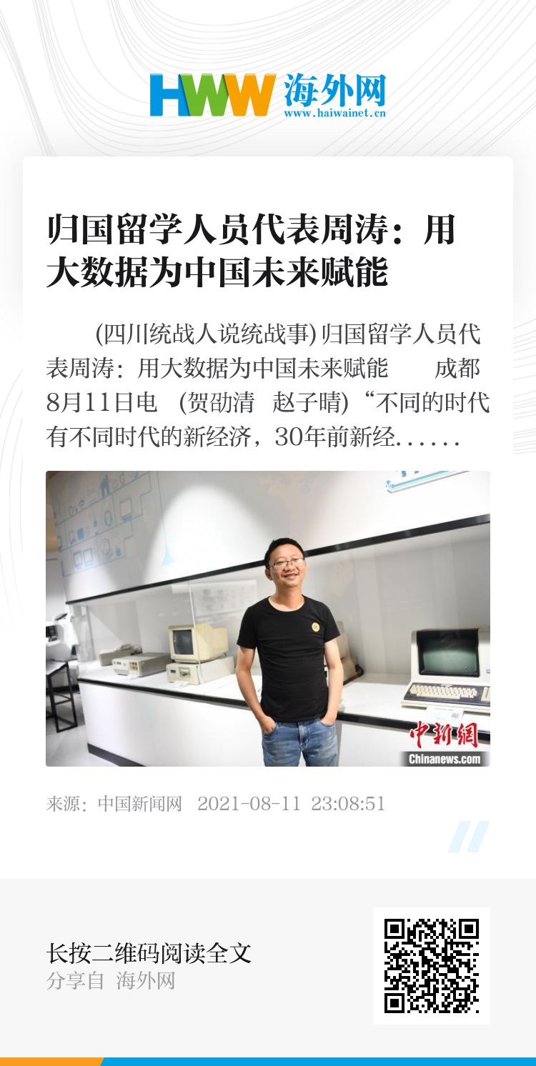 (四川统战人说统战事)归国留学人员代表周涛:用大数据为中国未来赋能