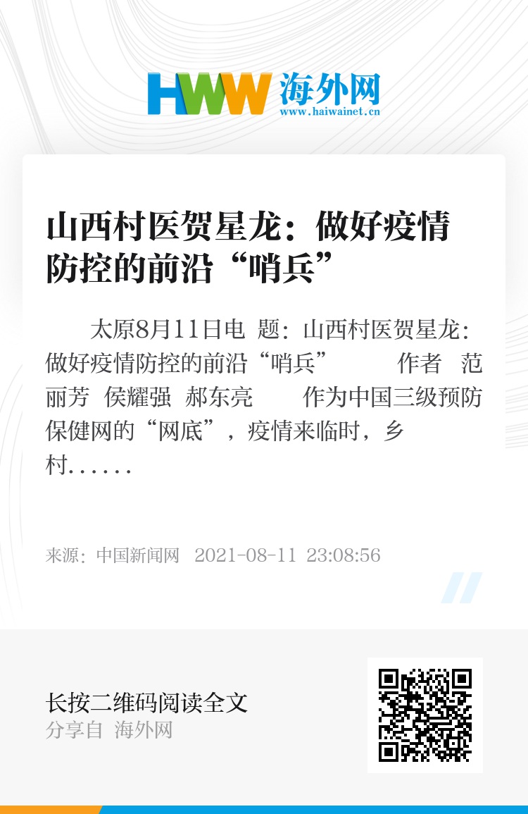 中新网太原8月11日电 题:山西村医贺星龙:做好疫情防控的前沿“哨兵”