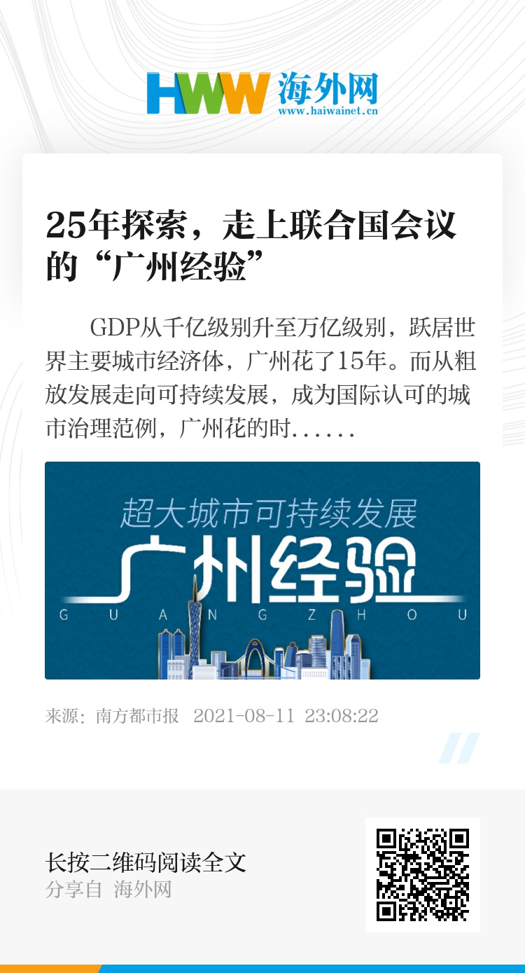 也就是说,广州在可持续发展方面的探索,不仅能为超过1870万的常住人口创造更宜居友好的生活环境,也将为国际社会提供发展中国家超大城市治理的重要样本。