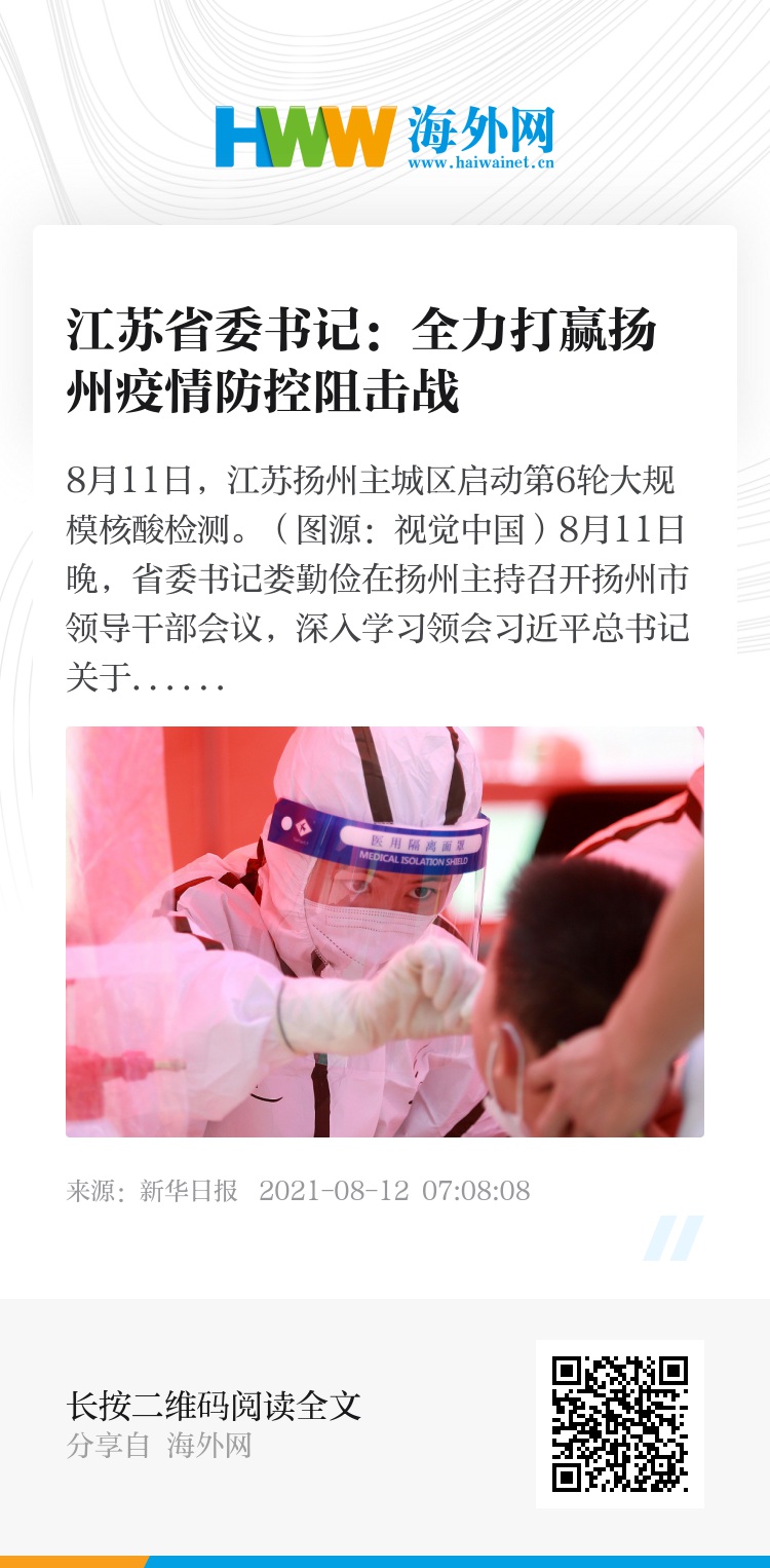8月11日,江苏扬州主城区启动第6轮大规模核酸检测。(图源:视觉中国)