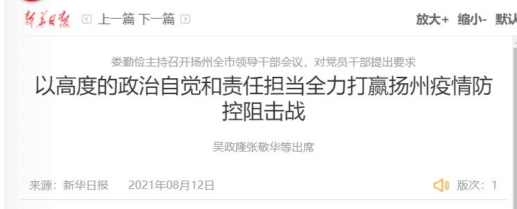 娄勤俭强调,党中央牵挂着扬州,全省在支持扬州。非常之时必须有非常的担当,扬州的干部一定要以必胜的信心、坚决的执行、果敢的精神、对人民群众的爱心,严格落实每一项防控措施,争分夺秒与病毒赛跑,坚决打赢这场疫情防控阻击战。