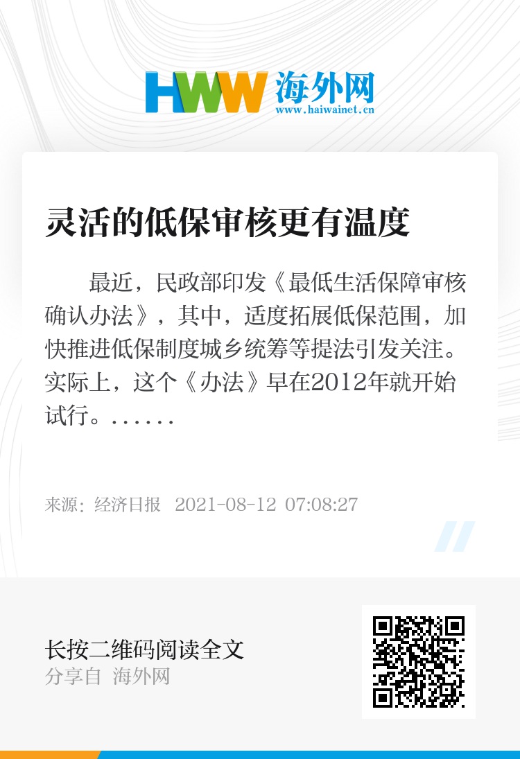 最近,民政部印发《最低生活保障审核确认办法》,其中,适度拓展低保范围,加快推进低保制度城乡统筹等提法引发关注。实际上,这个《办法》早在2012年就开始试行。值得注意的是,新《办法》和原来的相比,突出了最低生活保障的灵活性,使低保制度能够更加灵活地发挥救济作用。