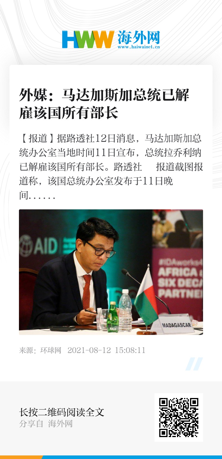 【环球网报道】据路透社12日消息,马达加斯加总统办公室当地时间11日宣布,总统拉乔利纳已解雇该国所有部长。