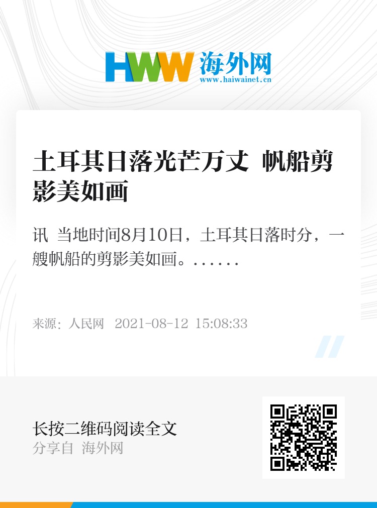 人民网讯 当地时间8月10日,土耳其日落时分,一艘帆船的剪影美如画。
