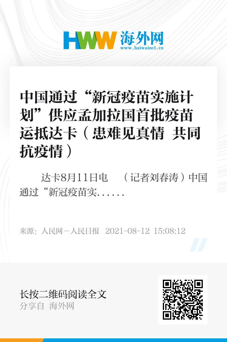 新华社达卡8月11日电 (记者刘春涛)中国通过“新冠疫苗实施计划”供应孟加拉国的首批170余万剂新冠疫苗10日晚运抵孟加拉国首都达卡。