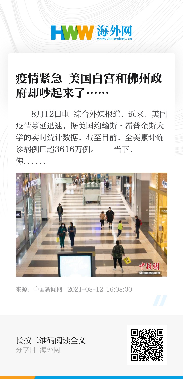 中新网8月12日电 综合外媒报道,近来,美国疫情蔓延迅速,据美国约翰斯·霍普金斯大学的实时统计数据,截至目前,全美累计确诊病例已超3616万例。