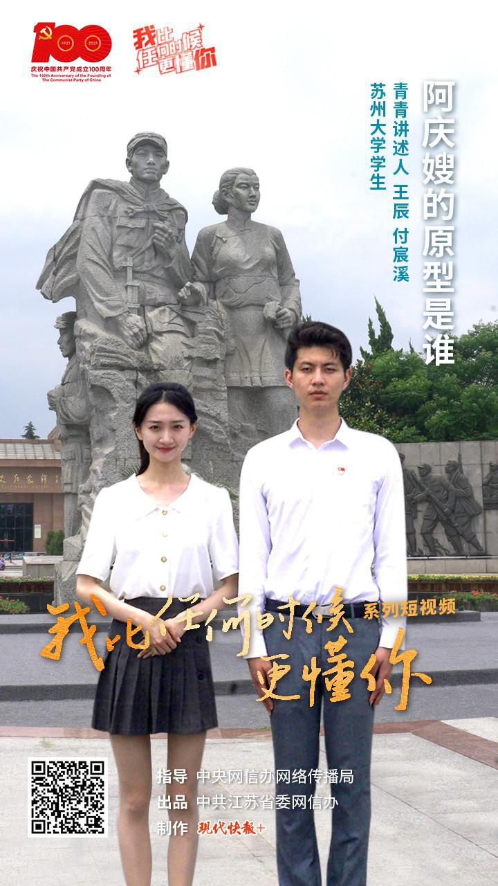 8 月 12 日,“我比任何时候更懂你”系列短视频第 19 集《阿庆嫂的原型是谁?》上线。视频中,青青讲述人、苏州大学学生王辰和付宸溪,走进沙家浜革命历史纪念馆,与大家一起探寻阿庆嫂的故事。