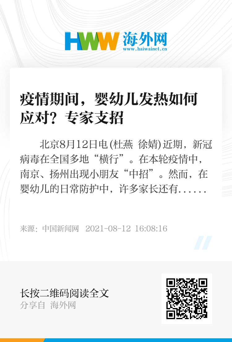 中新网北京8月12日电(杜燕 徐婧)近期,新冠病毒在全国多地“横行”。在本轮疫情中,南京、扬州出现小朋友“中招”。然而,在婴幼儿的日常防护中,许多家长还有着诸多疑问:小朋友需要佩戴口罩吗?小朋友怎样佩戴口罩更为安全有效?夏季是传染病高发季节,小朋友一旦出现发热,又该如何处理?