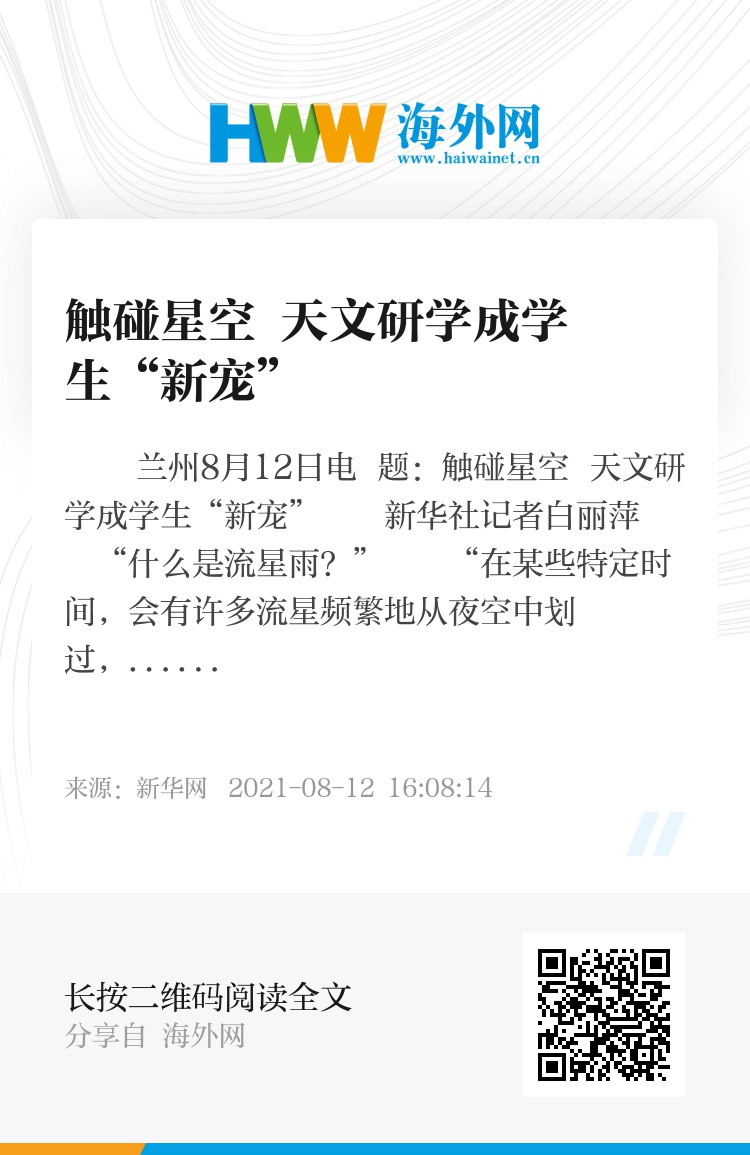 新华社兰州8月12日电 题:触碰星空 天文研学成学生“新宠”
