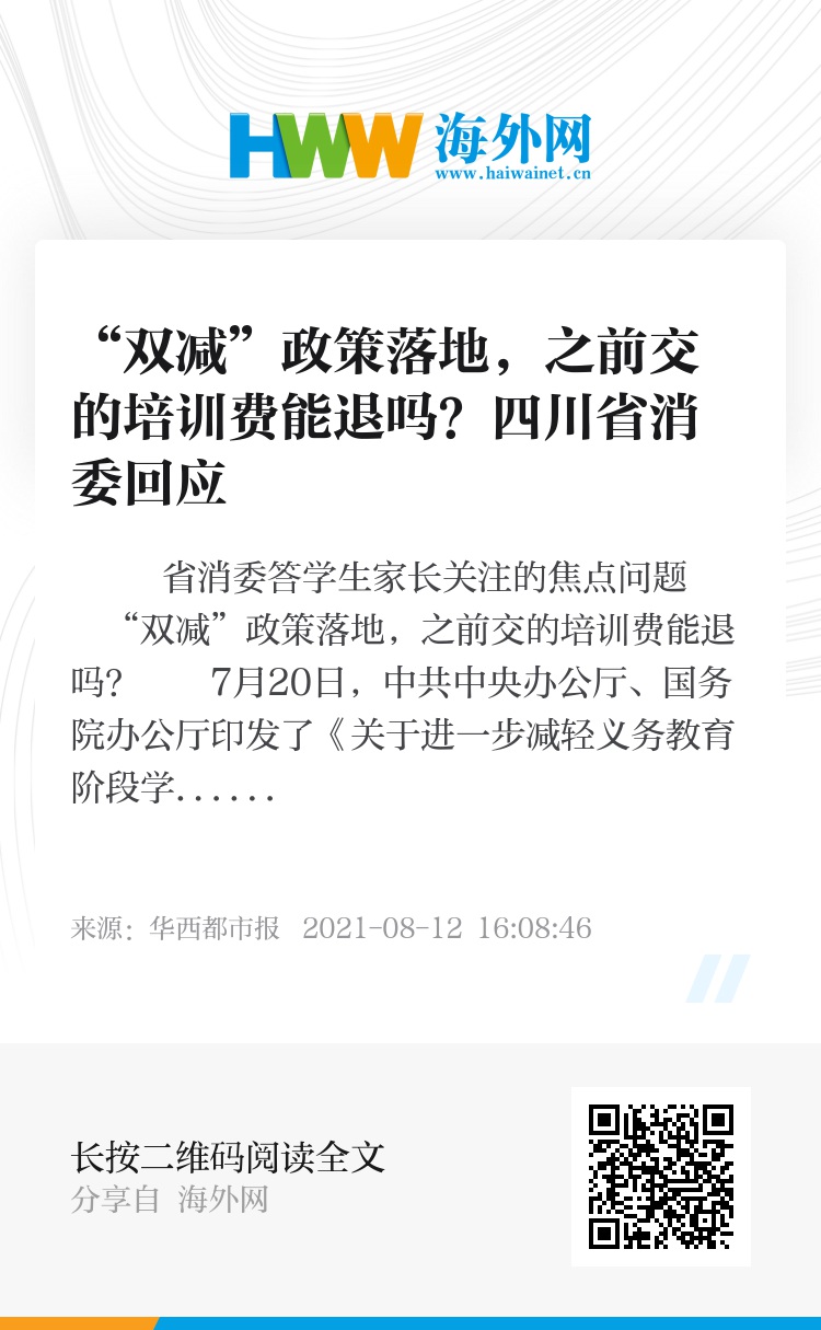 在此,四川省消委呼吁培训机构在贯彻落实“双减”政策时,要切实履行保护消费者合法权益的主体责任,及时向消费者反馈信息,发布处理方案,回应消费者关切。