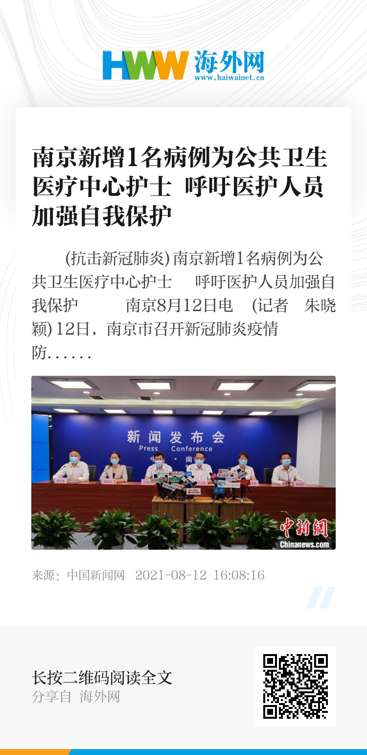 (抗击新冠肺炎)南京新增1名病例为公共卫生医疗中心护士 呼吁医护人员加强自我保护