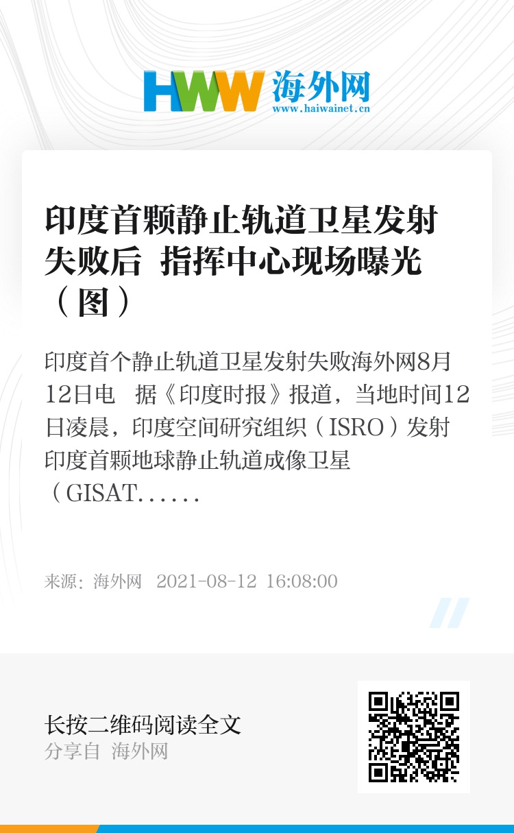 海外网8月12日电 据《印度时报》报道,当地时间12日凌晨,印度空间研究组织(ISRO)发射印度首颗地球静止轨道成像卫星(GISAT-1),由于第三阶段火箭点火失败,卫星未能送入预计轨道,最终发射失败。俄罗斯卫星通讯社的印度高级编辑在社交媒体上发布一组现场照片,展示了当时指挥中心的现场氛围。