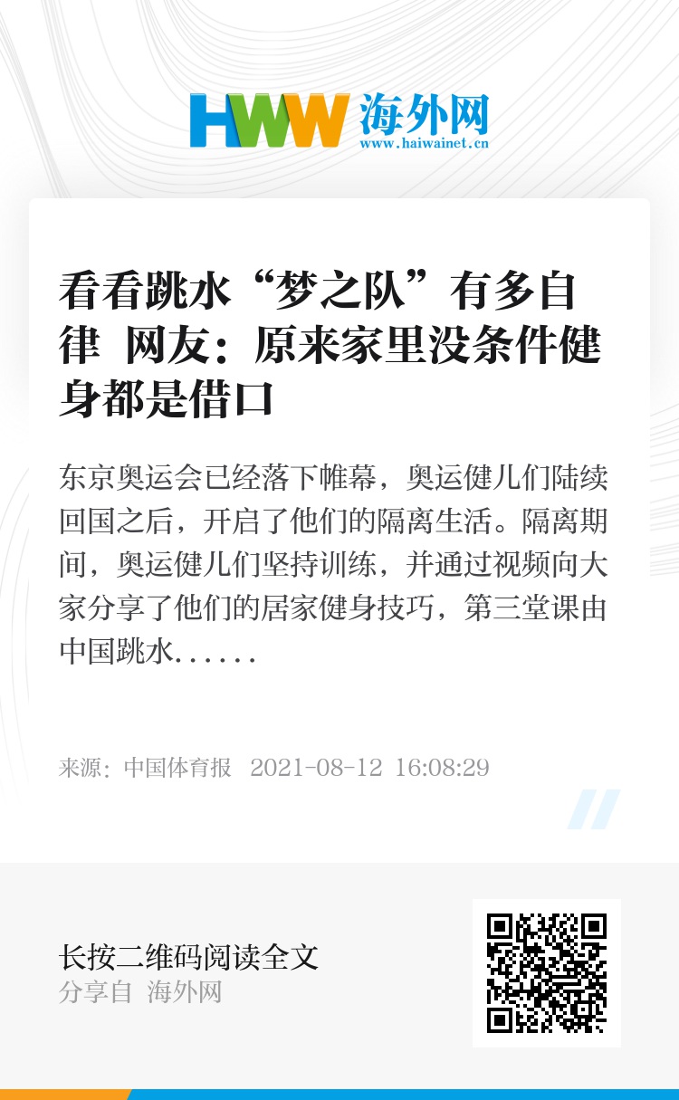原标题:奥运健儿健身课堂第三期 | 看看跳水“梦之队”有多自律 网友:原来家里没条件健身都是借口