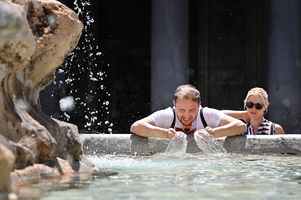 当地时间8月12日,意大利西西里岛锡拉库萨省测得48.8℃的气温,如果这一数据被进一步认定,将创下欧洲有记录以来的最高值。图为意大利首都罗马市民在喷泉旁解暑。图片来源:视觉中国