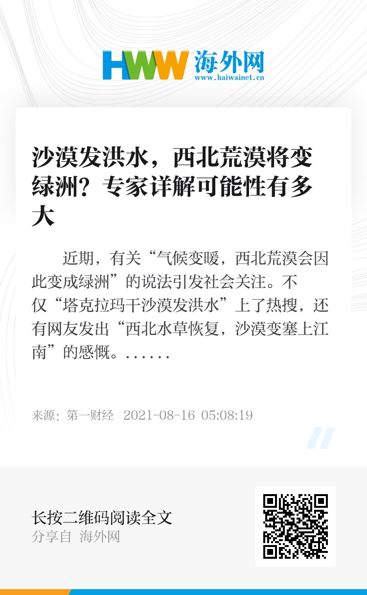 近期,有关“气候变暖,西北荒漠会因此变成绿洲”的说法引发社会关注。不仅“塔克拉玛干沙漠发洪水”上了热搜,还有网友发出“西北水草恢复,沙漠变塞上江南”的感慨。