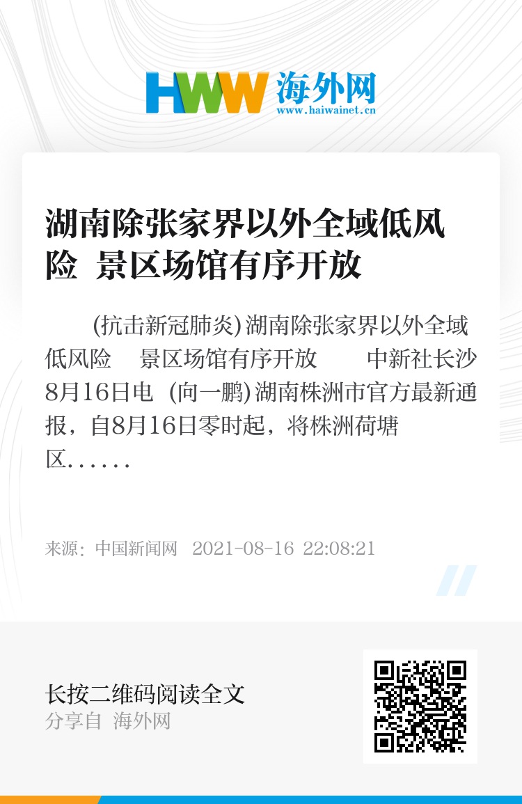 (抗击新冠肺炎)湖南除张家界以外全域低风险 景区场馆有序开放
