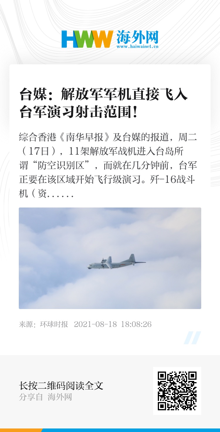 综合香港《南华早报》及台媒的报道,周二(17日),11架解放军战机进入台岛所谓“防空识别区”,而就在几分钟前,台军正要在该区域开始飞行级演习。