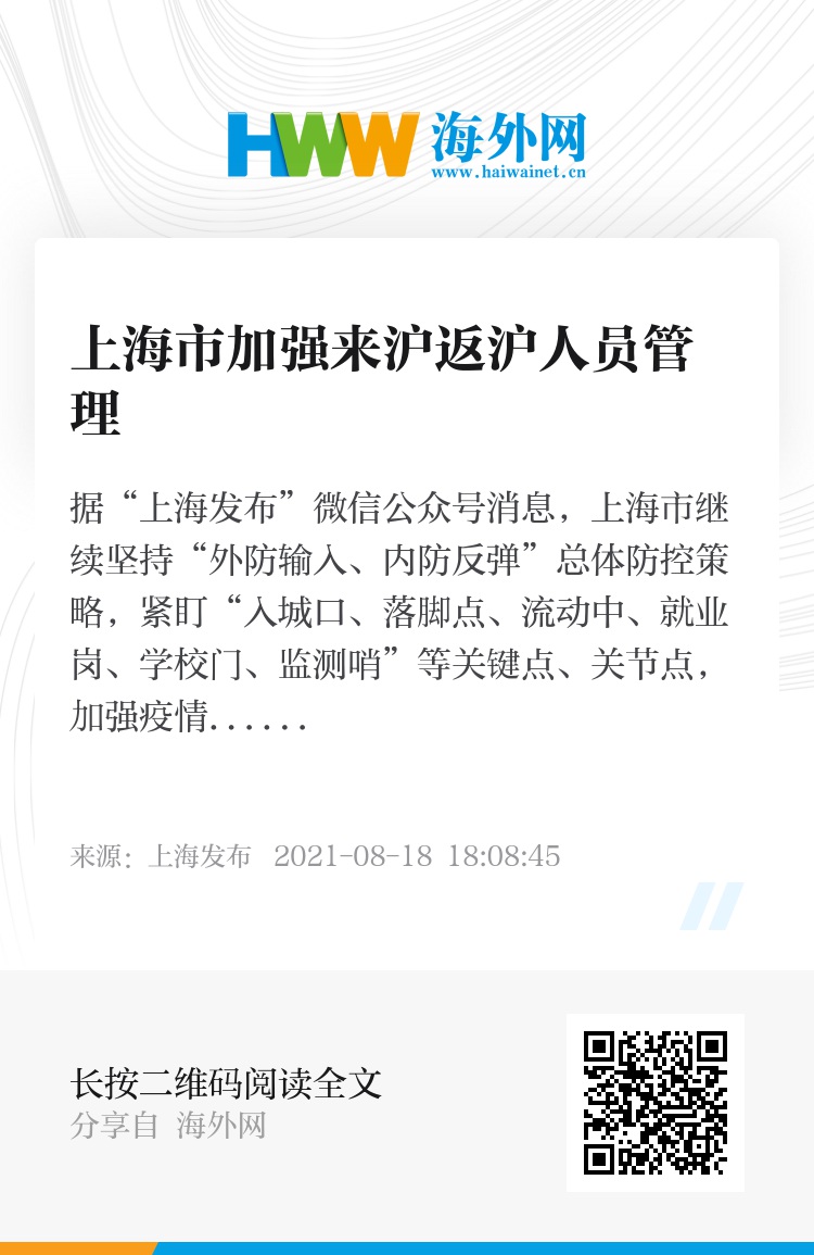 二是加强重点场所人员查验。机场、车站、码头等交通客运场(站),以及居村委、单位、学校、宾馆等场所加强对来沪返沪人员的体温测量和健康码查验。