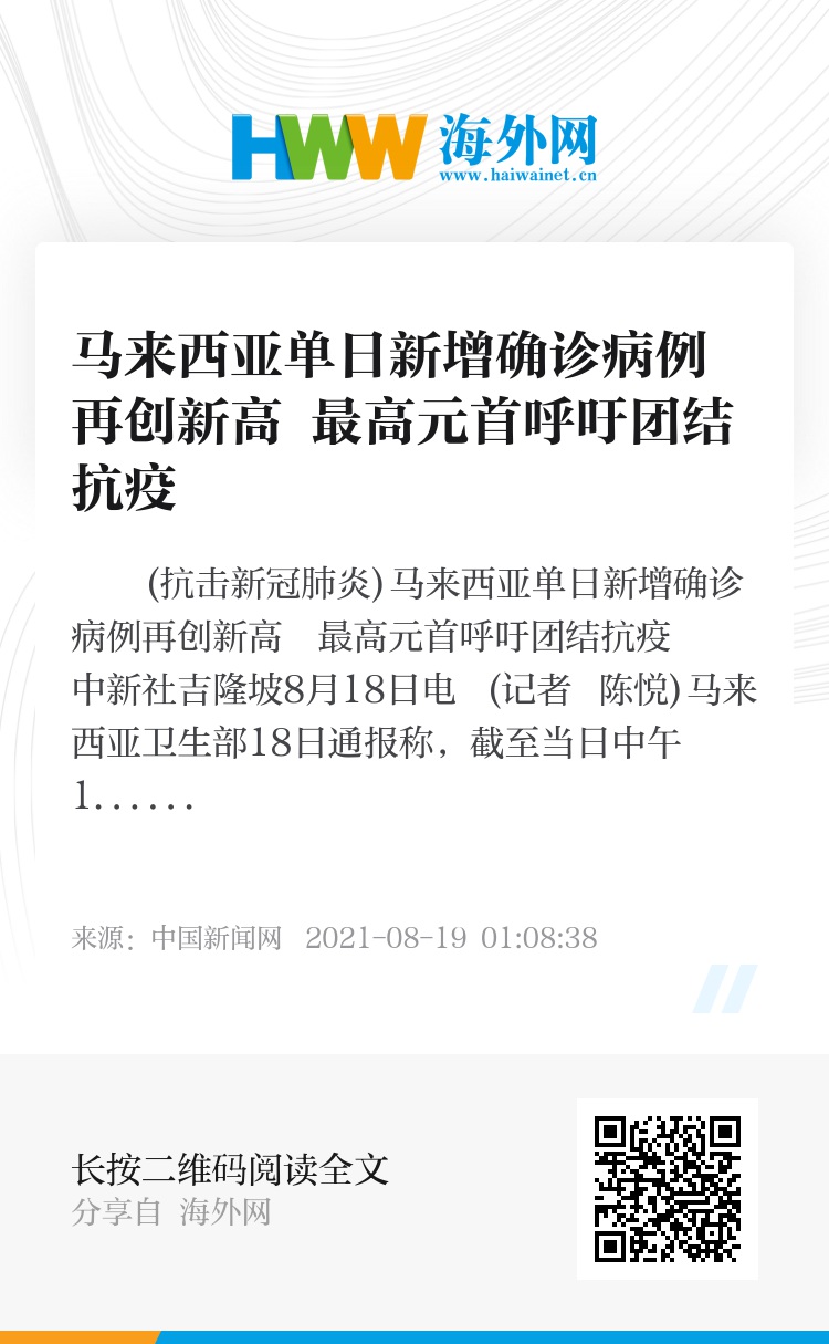 (抗击新冠肺炎)马来西亚单日新增确诊病例再创新高 最高元首呼吁团结抗疫