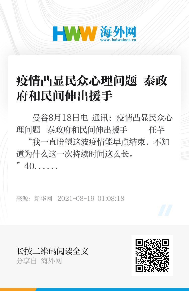 新华社曼谷8月18日电 通讯:疫情凸显民众心理问题 泰政府和民间伸出援手