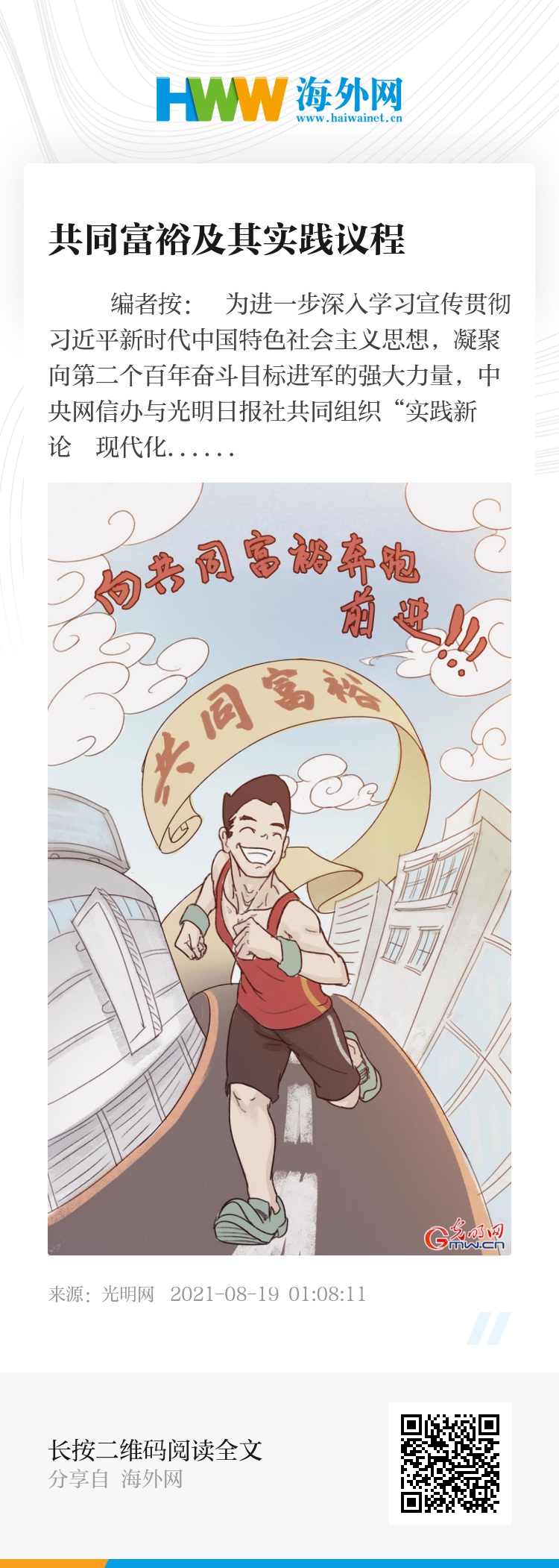 编者按: 为进一步深入学习宣传贯彻习近平新时代中国特色社会主义思想,凝聚向第二个百年奋斗目标进军的强大力量,中央网信办与光明日报社共同组织“实践新论・现代化进程的中国答卷”网上理论传播专栏,陆续在光明网推出系列理论评论文章和新媒体产品,总结中国共产党领导中国式现代化新道路的宝贵经验,充分彰显中国式现代化新道路的特色和优势,读懂和讲好中国特色社会主义创造的人类文明新形态。