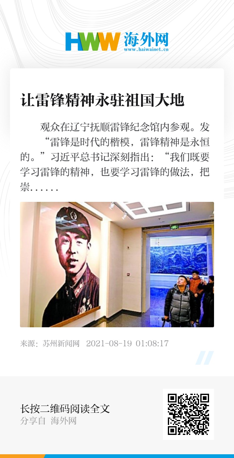 没有哪一种生命比活在人们的心中更长久,没有哪一种精神比长存于人们的行为中更永恒。新时代,雷锋精神仍将是精神谱系“价值DNA”链条上的“最强基因”之一,这也是推动振兴发展最深沉、最博大、最雄浑的精神力量之一。让雷锋精神永驻祖国大地,在这片热土上开花结果、世代相传,信仰的天空会更辽阔,精神的画卷会更绚烂,心灵的追求会更高远,时代前进的步伐会更加铿锵。
