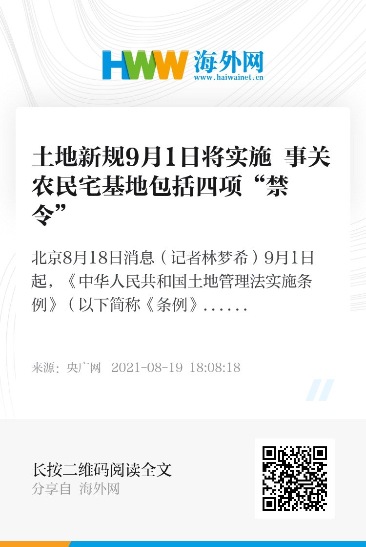 央广网北京8月18日消息(记者林梦希)9月1日起,《中华人民共和国土地管理法实施条例》(以下简称《条例》)将正式施行。