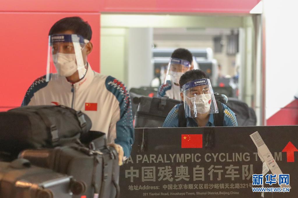 8月19日,中国残奥代表团自行车队成员抵达东京成田机场。当日,参加东京残奥会的中国体育代表团首批约190人的团队抵达东京。首批队伍包括参加自行车、游泳、盲人门球和田径项目的运动员。新华社记者 杜潇逸 摄