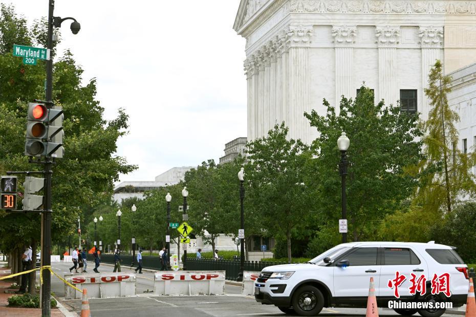 当地时间8月19日,一名男子驾驶黑色皮卡至国会图书馆前,并声称车上有炸弹。该事件导致美国国会大厦周边街道封锁,警方还疏散了周边国会办公楼和联邦最高法院里的工作人员。图为美联邦最高法院附近的街道被封锁。 中新社记者 陈孟统 摄