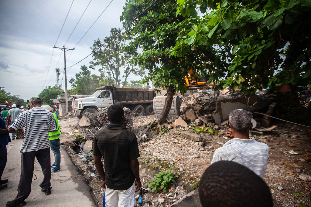 当地时间2021年8月19日,海地莱凯。搜救工作持续中,与此同时,救援物资陆续抵达海地。海地8月14日发生7.2级浅源地震,“今日俄罗斯”(RT)援引海地民防部门18日晚更新的数字称,此次地震已造成至少2189人死亡,12268人受伤,超过300人失踪。图片来源:视觉中国