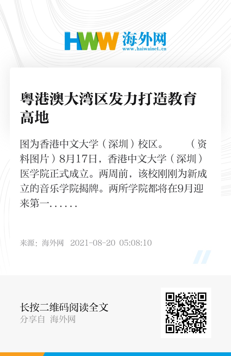 无论是要建成世界级城市群,还是发展国际科技创新中心,高质量的教育都是粤港澳大湾区不可或缺的要件。
