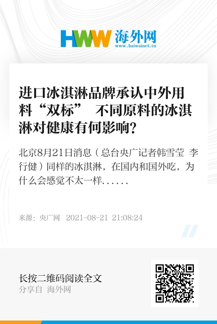 央广网北京8月21日消息(总台央广记者韩雪莹 李行健)同样的冰淇淋,在国内和国外吃,为什么会感觉不太一样?近日,因被质疑中外产品原料不同,联合利华公司旗下的高端冰淇淋品牌“梦龙”被网友送上了热搜。
