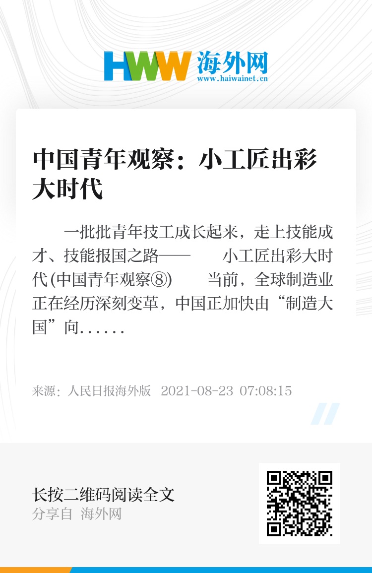 今日之中国,“十四五”扬帆起航,已踏上建设社会主义现代化国家、向第二个百年奋斗目标进军的新征程,这是一个培养和造就“小工匠”的“大时代”,更多的青年将在技能成才、技能报国之路上绽放青春光彩。