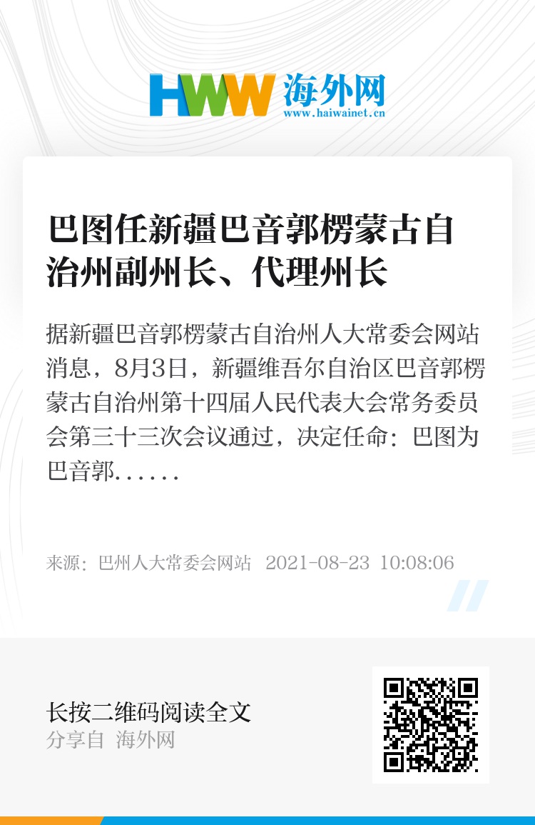 据新疆巴音郭楞蒙古自治州人大常委会网站消息,8月3日,新疆维吾尔自治区巴音郭楞蒙古自治州第十四届人民代表大会常务委员会第三十三次会议通过,决定任命:巴图为巴音郭楞蒙古自治州副州长。决定:巴图为巴音郭楞蒙古自治州副州长、代理州长。