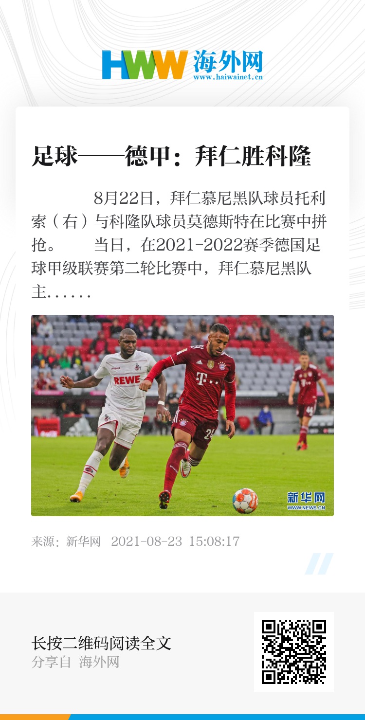 当日,在2021-2022赛季德国足球甲级联赛第二轮比赛中,拜仁慕尼黑队主场以3比2战胜科隆队。