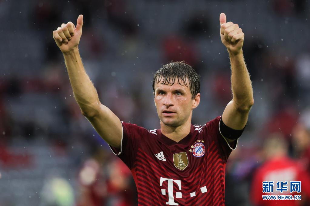 8月22日,拜仁慕尼黑队球员穆勒在比赛后向球迷致意。