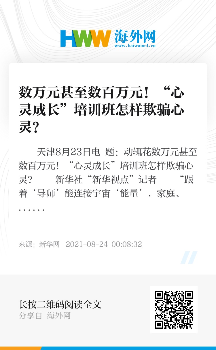 新华社天津8月23日电 题:动辄花数万元甚至数百万元!“心灵成长”培训班怎样欺骗心灵?