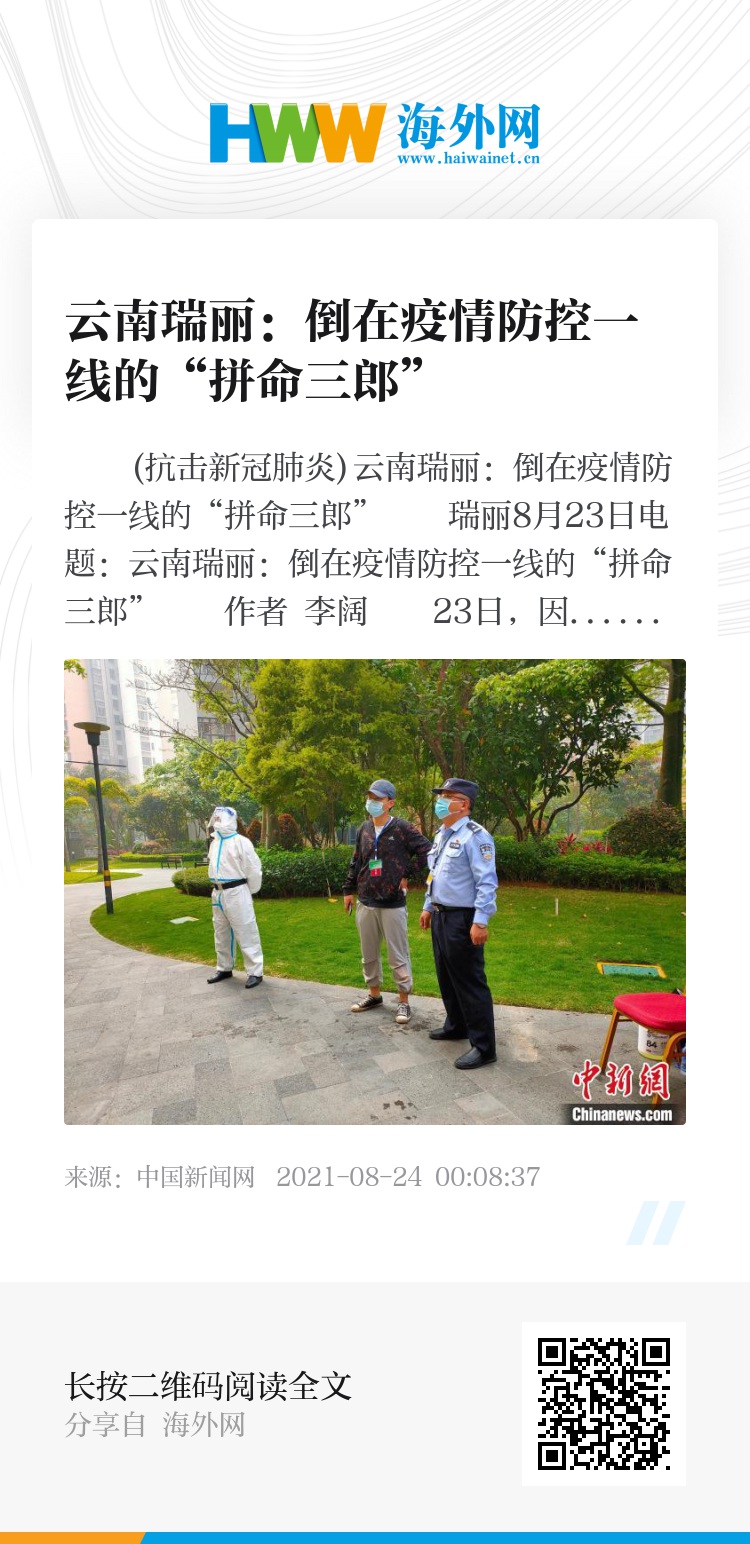 中新网瑞丽8月23日电 题:云南瑞丽:倒在疫情防控一线的“拼命三郎”