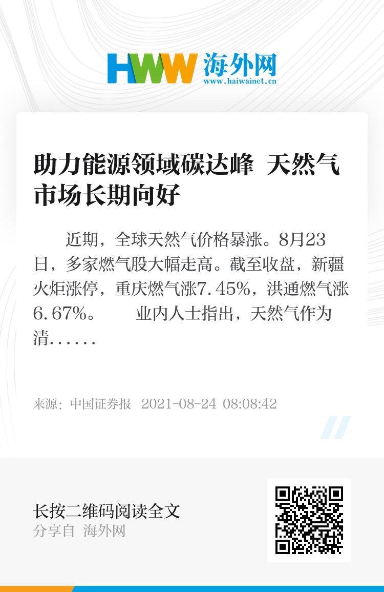 近期,全球天然气价格暴涨。8月23日,多家燃气股大幅走高。截至收盘,新疆火炬涨停,重庆燃气涨7.45%,洪通燃气涨6.67%。
