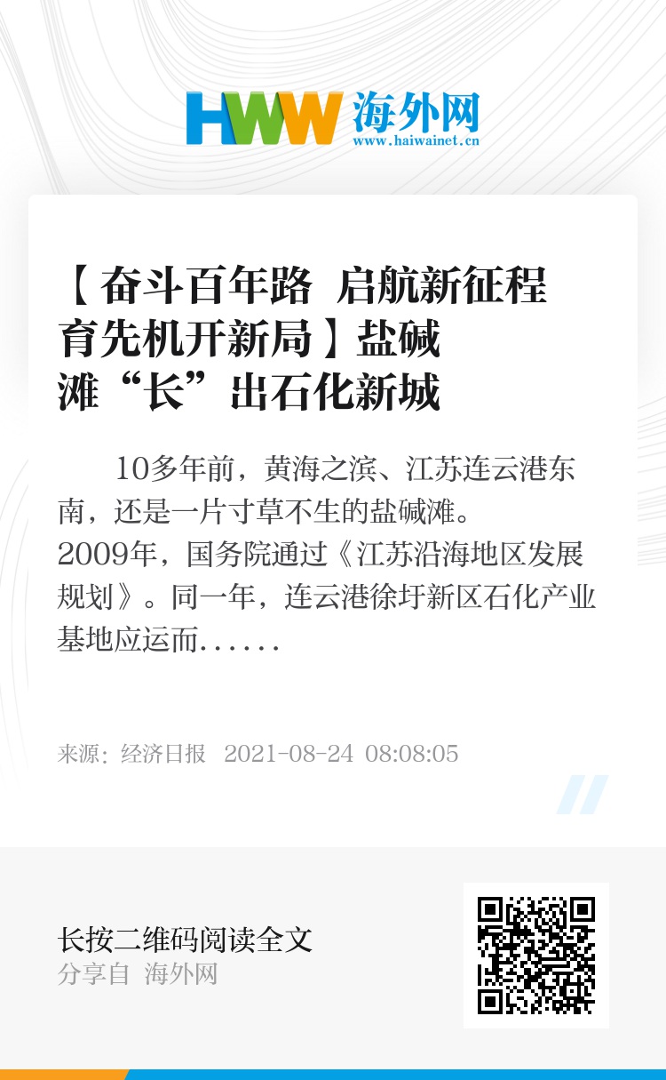 2009年,国务院通过《江苏沿海地区发展规划》。同一年,连云港徐圩新区石化产业基地应运而生,开始规划建设深水港口,发展临港重化工产业。2014年,国家《石化产业规划布局方案》公布,明确连云港石化产业基地为全国七大石化产业基地之一。自此,连云港在一片盐碱滩涂上起笔作画,目标直指世界级石化产业基地。
