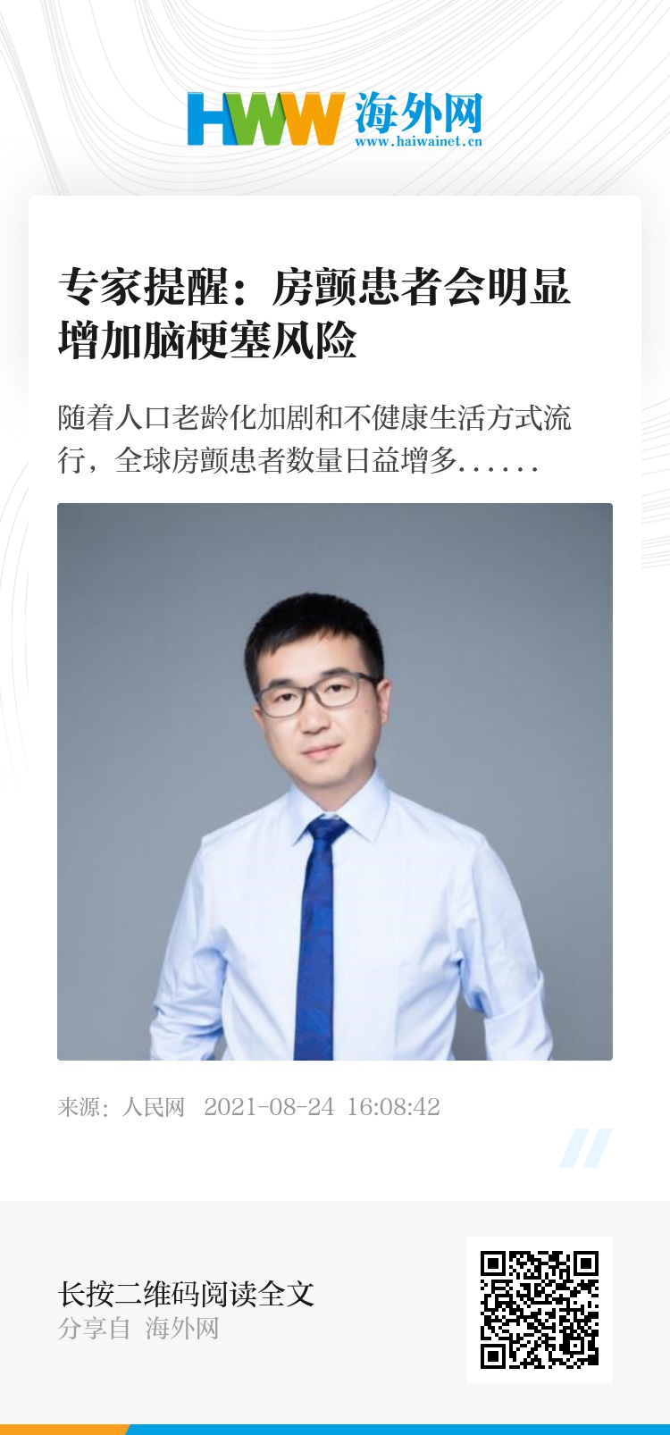 随着人口老龄化加剧和不健康生活方式流行,全球房颤患者数量日益增多。昆明医科大学第一附属医院老年心内三病区主任华宝桐向网友科普房颤的基本知识,预防房颤发生。