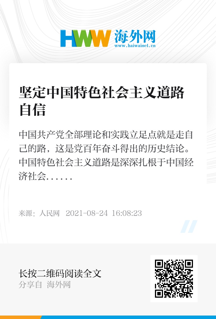 ――源于对历史唯物主义的自信。历史唯物主义深刻揭示了人类社会历史发展的一般规律,科学阐释了人类从必然王国迈向自由王国的根本途径,正确指明了人类实现自由和解放的光辉道路。中国特色社会主义道路坚持科学社会主义基本原则,遵循人类社会历史发展的一般规律,符合先进生产力发展要求和人类文明进步趋势,是对社会主义建设规律、人类社会发展规律的深刻把握。我们要在深入把握中国特色社会主义科学性和真理性的基础上增强道路自信,旗帜鲜明抵制和批判视西方道路为“普世道路”的认识误区。