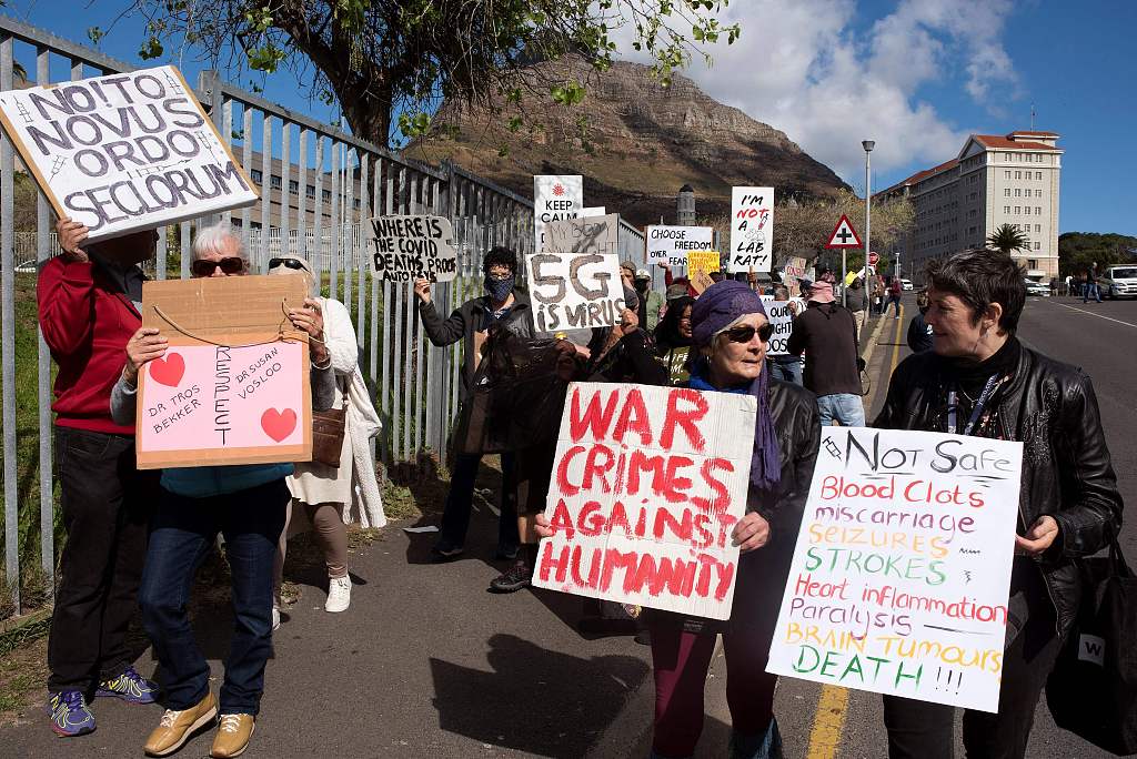 南非首都开普敦出现抗议活动 反对接种新冠疫苗