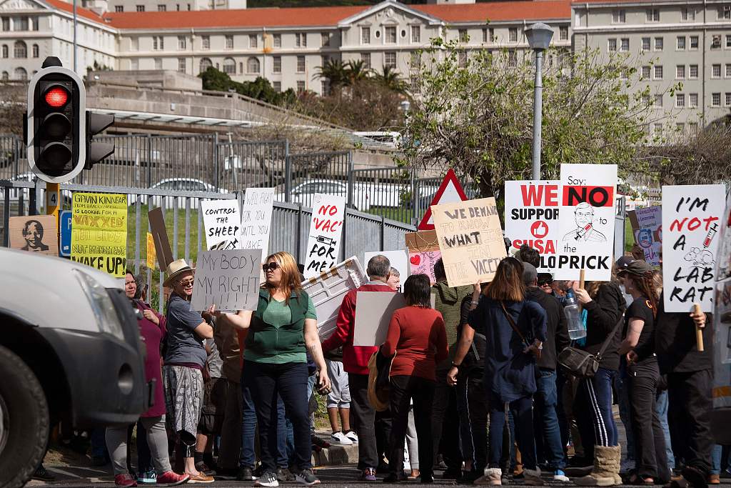 南非首都开普敦出现抗议活动 反对接种新冠疫苗