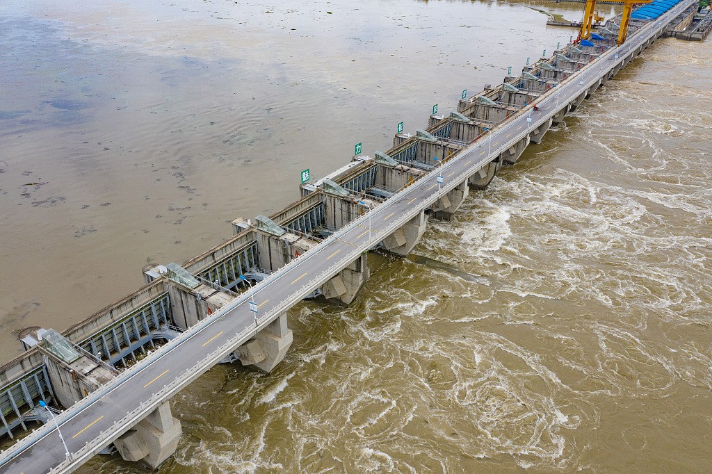 8月24日上午11时,今年以来汉江最大洪峰抵达襄阳市汉江崔家营航电枢纽,汉江襄阳站水位65.55米,超设防水位(65.50米)0.05米。此前,襄阳市交通运输局发布通告,8月23日16时至25日12时,禁止汉江水域船舶航行和水上水下施工作业。图片来源:人民视觉