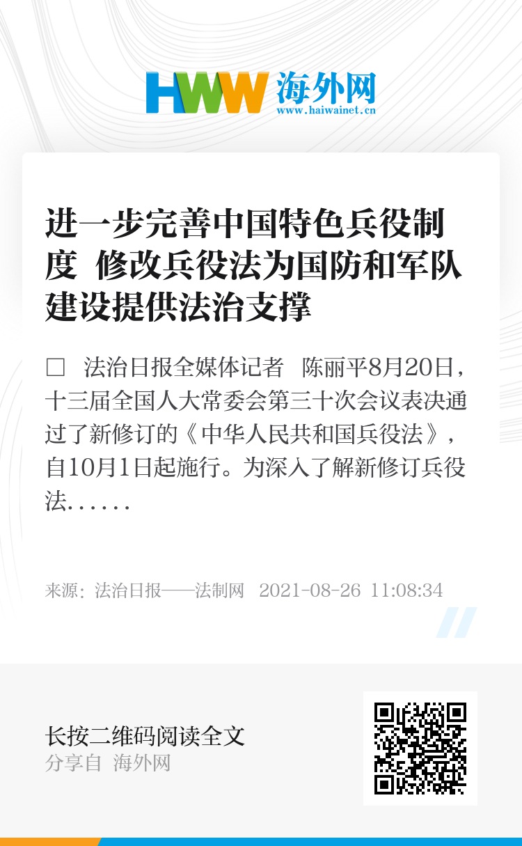 傅达林:此次修订内容十分丰富,强化了党对兵役工作的统一领导,完善兵役基本制度,调整公民服役标准条件,优化预备役制度设计,完善战时兵员动员体制等。